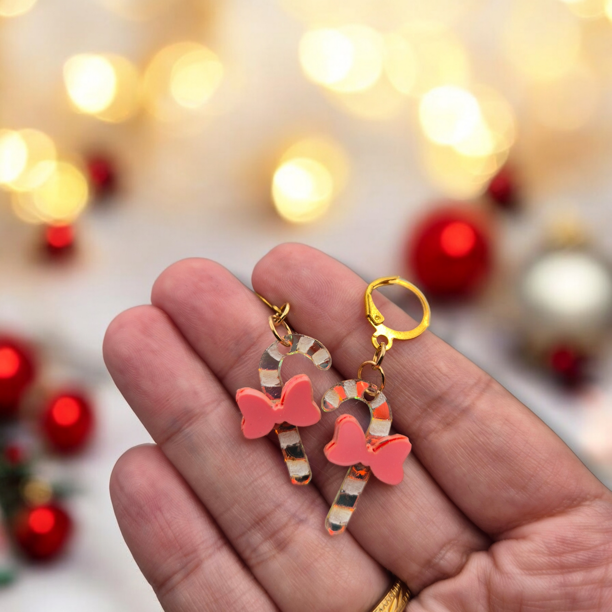 Sweeten your holidays with these earrings inspired by classic candy canes. Their vibrant red and white tones and playful design add a cheerful and festive touch, perfect for adding holiday magic to any look.